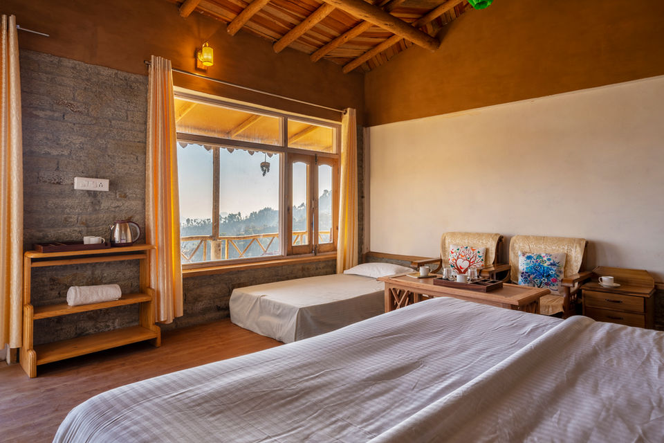 At Sukoon Homestay, your day starts with the melodious chirping of birds while the first rays of the sun fall onto the stone walls and slate roofs of your private cottage.
